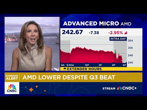 are down after our suspected company topping Wall Street estimates on both the top and the bottom lines. So, Chipmaker's conference call is underway. CNBC's Mackenzie Sagalas has got the latest.Mackenzie, >> hey Mel. So, that earnings beat is being powered by stronger than expected data center revenue. CEO Lisa Sue on the earnings call just now talking about momentum and that business accelerating.Part of why they guided to Q4 revenue that's above street estimates. And that's what investors have been waitin ...