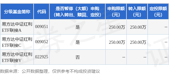 公告速递:易方达中证红利ETF联接基金A类基金份额、C类基金份额暂停机构客户大额申购及大额转换转入业务