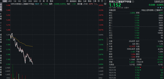 Group 1 - The core viewpoint is that the AI sector, particularly the AI-focused ETF, demonstrates resilience and potential for growth despite market fluctuations, as evidenced by its recent performance and capital inflow [1][2] - The AI-focused ETF, Huaxia (589010), experienced a decline of 1.33% but rebounded significantly after reaching a maximum intraday drop of 3.01%, indicating strong upward elasticity [1] - The ETF has attracted significant capital, with an inflow of 33.08 million yuan yesterday and a total of 1.33 billion yuan over the past five trading days, marking it as a favored choice for market participants looking to invest in the AI sector [1] Group 2 - In the first half of 2025, the installation rate of L2 and above advanced driving assistance systems in new energy passenger vehicles reached 82.6%, with further growth in the market segment priced below 160,000 yuan [2] - The integration of AI technology into smart vehicles is accelerating, supported by government initiatives aimed at promoting intelligent connected vehicles and smart terminals [2] - The AI-focused ETF closely tracks the Shanghai Stock Exchange's AI index, covering high-quality enterprises across the entire industry chain, benefiting from high R&D investment and policy support [2]