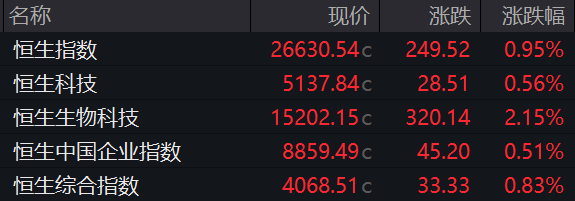 港股收评:恒指涨0.95%、科指涨0.56%,钢铁、有色及稀土概念股走高,科网股走势分化,生物医药股活跃