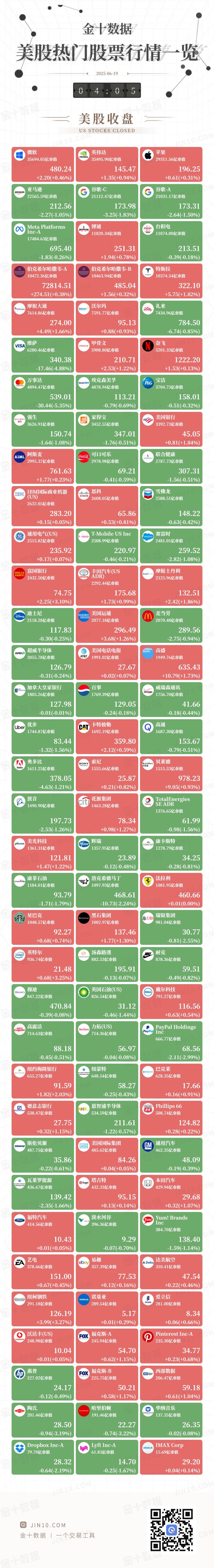 金十图示:2025年06月20日(周五)美股热门股票行情一览(美股收盘)