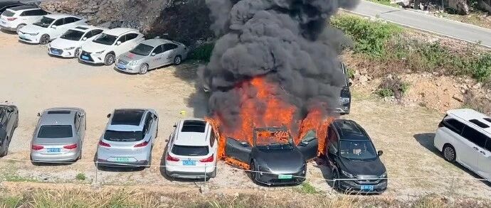 一辆阿维塔起火引燃7辆车,通报:副驾座椅位起火,原因查验中
