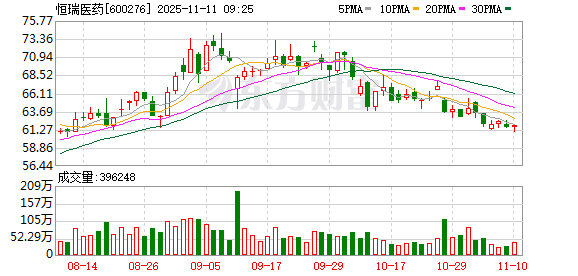 恒瑞医药11月11日斥资915.26万元回购15万股A股