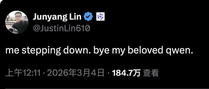 编辑 | 七三 3月3日夜间,阿里千问大模型技术负责人林俊旸自宣卸任,他在社交平台写道"me stepping down. bye my beloved qwen."(我将卸任,再见我亲爱的千问)。作为阿里千问大模型的技术核 心人物,林俊旸或将离开千问团队,目前尚不知他是否会离开阿里巴巴。记者就此消息向阿里巴巴求 证,截至发稿暂未获得回复。 ...
