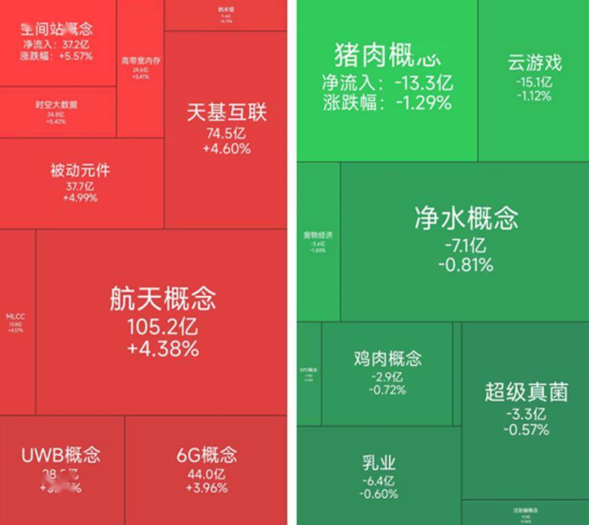 18个主力资金净流出行业中,基础化工、医药生物行业主力资金净流出金额居前,均超10亿元;交通运输、食品饮料、传媒、有色金属、非银金 融行业主力资金净流出金额均超8亿元。 15股主力资金净流入均超4亿元 (原标题:主力资金丨尾盘大幅加仓股出炉) 电子行业主力资金净流入49.16亿元,居首。 A股三大指数今日(12月24日)集体上涨,沪指日线六连阳。行业板块多数收涨,电源设备、航天航空、船舶制造、玻璃玻纤、包装材料、消费 电子、化纤行业、计算机设备板块涨幅居前,贵金属、保险板块跌幅居前。 从今日主力资金情况来看,沪深两市全天主力资金净流入3.81亿元。13个行业主力资金净流入,电子行业主力资金净流入49.16亿元,居首;电力 设备、国防军工行业主力资金分别净流入22.17亿元、12.33亿元;社会服务、建筑装饰、建筑材料行业主力资金净流入金额均超过2亿元。 声明:数据宝所有资讯内容不构成投资建议,股市有风险,投资需谨慎。 校对:姚远 相关ETF 据证券时报·数据宝统计,从个股来看,45股主力资金净流入均超2亿元,15股获主力资金净流入均超4亿元。 德明利主力资金净流入9.55亿元,居首。公司在近日的机构调研中表示 ...