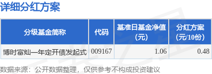基金分红:博时富灿一年定开债发起式基金11月24日分红