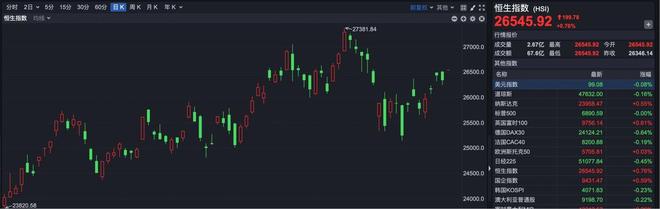 港股方面,有色金属板块再次走强。其中,中国铝业(02600.HK)、南山铝业国际(02610.HK)涨超 7%,中国白银集团(00815.HK)、江西铜业股份(00358.HK)、北方矿业(00433.HK)、赣锋锂业 (01772.HK)涨超6%,中国宏桥(01378.HK)涨超5%。此外,风电、煤炭、半导体等板块早盘涨幅 领先。 10月30日早盘,港股市场跳空高开。 截至发稿,恒生指数开盘报26545.92点,上涨199.78点,涨幅0.76%。 打开百度APP畅享高清图片 恒生科技指数开盘报6125.63点,上涨32.19点,涨幅0.53%。 消息面,美联储连续第二次降息25个基点,至3.75%至4%,符合预期,并宣布12月开始停止缩表,鲍威 尔称12月可能暂停降息。与此同时,香港金管局将基本利率下调25个基点至4.25%。美股方面,英伟达 历史性地达到了5万亿美元的市值,其首席执行官黄仁勋所宣布的一系列协议推动人工智能热潮屡创新 高。 其他方面,科网股涨多跌少,京东、哔哩哔哩、快手涨超2%,腾讯、阿里巴巴、美团、联想涨超1%, 网易低开近6%,随后跌幅收窄;苹果概念高开,鸿腾精密涨超7%;中资券商股普 ...