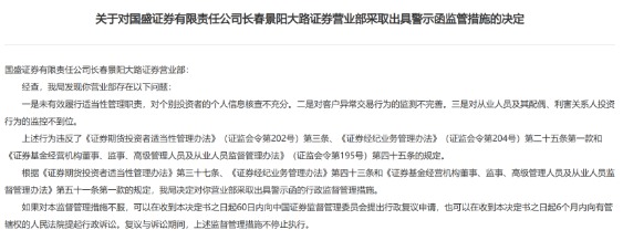 国盛证券一营业部遭警示