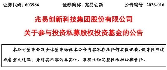 证券代码:603986 证券简称:兆易创新 公告编号:2026-016 兆易创新科技集团股份有限公司 关于参与投资私募股权投资基金的公告 本公司董事会及全体董事保证本公告内容不存在任何虚假记载、误导性陈述 或者重大遗漏,并对其内容的真实性、准确性和完整性承担法律责任。 重要内容提示: 与私募基金合作投资的基本情况:兆易创新科技集团股份有限公司(以 下简称"兆易创新"或"公司")拟作为有限合伙人以自有资金出资人民币 40,000 万元认购上海石溪兆易智芯创业投资合伙企业(有限合伙)(拟定名,以实际注 册登记为准)(以下简称"基金"或"合伙企业")约 25.87%的基金份额(基金 尚处于募集阶段,基金总认缴出资额及公司持有基金份额比例以最终募集完成情 况为准) 本次交易不构成关联交易,未构成重大资产重组 本次交易已经公司第五届董事会第九次会议审议通过,本次交易未达到 股东会审议标准。 相关风险提示: 1. 基金尚处于筹划设立阶段,合伙协议尚未签署,后续能否顺利完成签署 存在不确定性。 2. 基金尚未完成工商注册登记,且需进行中国证券投资基金业协会的备案 等相关程序后方可从事相关投资活动,实施情况和进度存在不确定性 ...