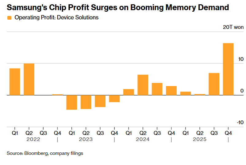 “存储超级周期”迎核爆级强化! DRAM霸主三星利润与营收齐创新高 半导体利润猛增465%