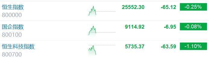 港股三大指数集体下跌!恒生科技指数跌逾1%,恒指跌0.25%