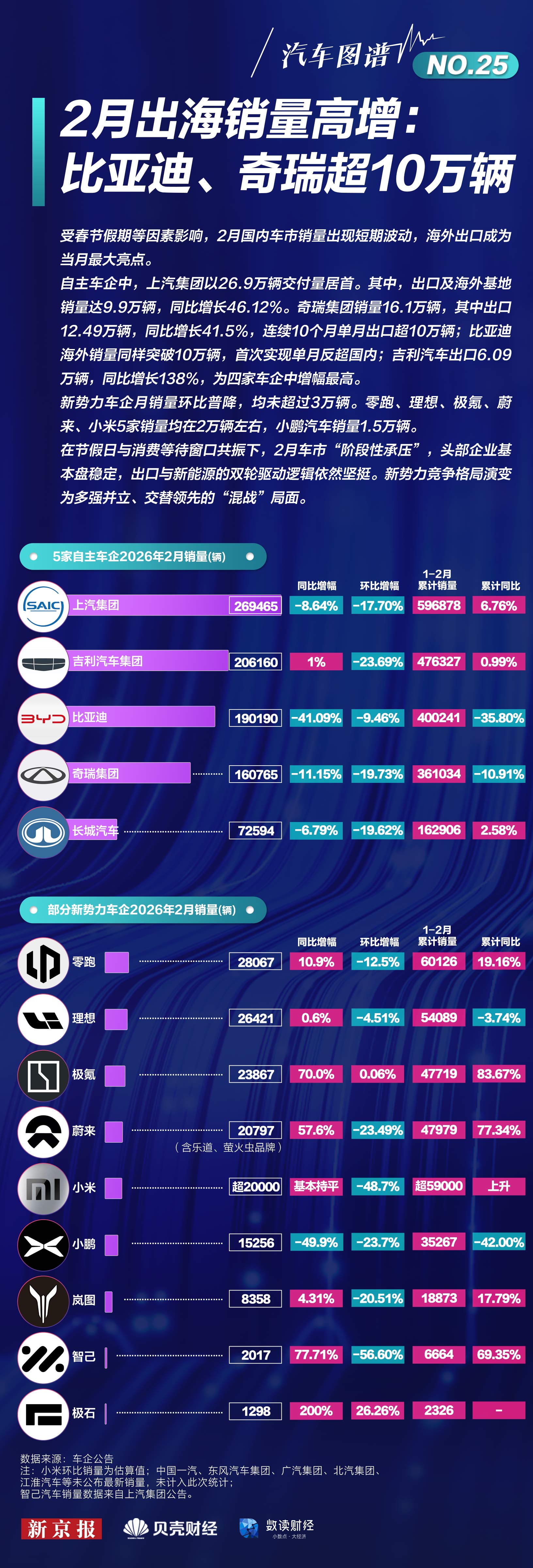 消息面上,比亚迪昨日公布2月销量数据,当月销售约19万辆,同比下跌超40%。其中海外销量超10万 辆,同比增长41.4%,首次超过国内销量。今年1~2月,比亚迪海外累计销量突破20万辆。(第一财 经) 3月2日,比亚迪(002594.SZ)开盘即上涨,股价盘中涨幅一度逼近5%,领涨汽车整车板块;比亚迪股 份(01211.HK)股价盘中一度涨超3%,在港股逆势上涨。 ...