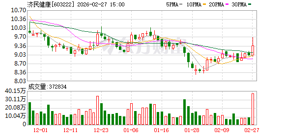 (文章来源:证券日报) 证券日报网讯 2月27日,济民健康发布公告称,截至2026年2月27日,公司通过集中竞价交易方式累计 回购股份10,626,840股,占公司总股本的比例为2.02%。其中2026年2月,公司通过集中竞价交易方 式回购股份5,286,560股,占公司总股本的比例为1.01%。 ...