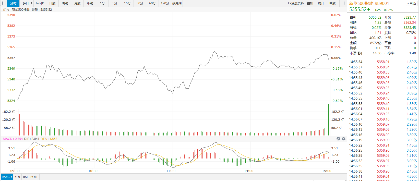 走势上看,新华500指数(989001)27日早间低开,随后窄幅震荡,午后指数一度翻红,最终微幅收跌。指数盘中最高触及5362.34点,最低触及5323.45点, 成分股全天总成交额报8572亿元,成交额较上一交易日略有减少。 成分股方面,厦门钨业、永兴材料、环旭电子、包钢股份等成分股涨幅居前;盛美上海、高德红外、中际旭创、思源电气等成分股跌幅靠前。 转自:新华财经 新华500指数由国家金融信息平台•新华财经发布,新华指数(北京)有限公司运营维护,指数度量A股主要大中市值股票价格水平。关于新华500指数的详 细信息,请参见新华财经客户端。 新华财经北京2月27日电(胡晨曦)新华500指数(989001)2月27日收盘跌0.02%,报5355.52点。 编辑:罗浩 ...