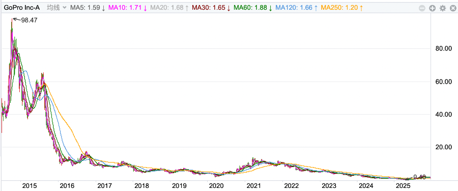 记者丨雷若馨 编辑丨孙超逸 曾经代表极限精神的四色方块,巅峰时市值超人民币 900 亿元,如今在华尔街的报表上只余下 滑的曲线。一家公司为何在自己开创的赛道上,被后来者联手逐出牌桌? 十多年前的2014年,穿着红色运动服的伍德曼在纳斯达克敲响开市钟,GoPro的市值冲向130 亿美元的顶峰。 "Be a Hero"(成为英雄)——这句标语不仅印在产品包装上,更铭刻在这10年的创业神话 中。 然而, 神话的没落,也只用了另一个十年。 2025年,这家运动相机市场的开创者, 市值已蒸发掉98% ,仅剩2.54亿美元。全球市场份额 从绝对统治的75%以上,暴跌至不足20%。 GoPro股价,NASDAQ:GPRO 与之形成对比的,全球手持智能影像设备市场却仍在高速扩张,复合年增长率(CAGR) 15.9%。沙利文预测2030年该市场规模将达799.3亿元。 如 今 的 市 场 , 正 在 上 演 " 双 雄 对 决 " 。 两 家 总 部 均 位 于 深 圳 的 科 技 公 司 —— 影 石 创 新 (688775.SH)、大疆创新均气势如虹,相互攻入腹地。 而GoPro,已不在主牌桌之上。更为讽刺的是,就在GoP ...