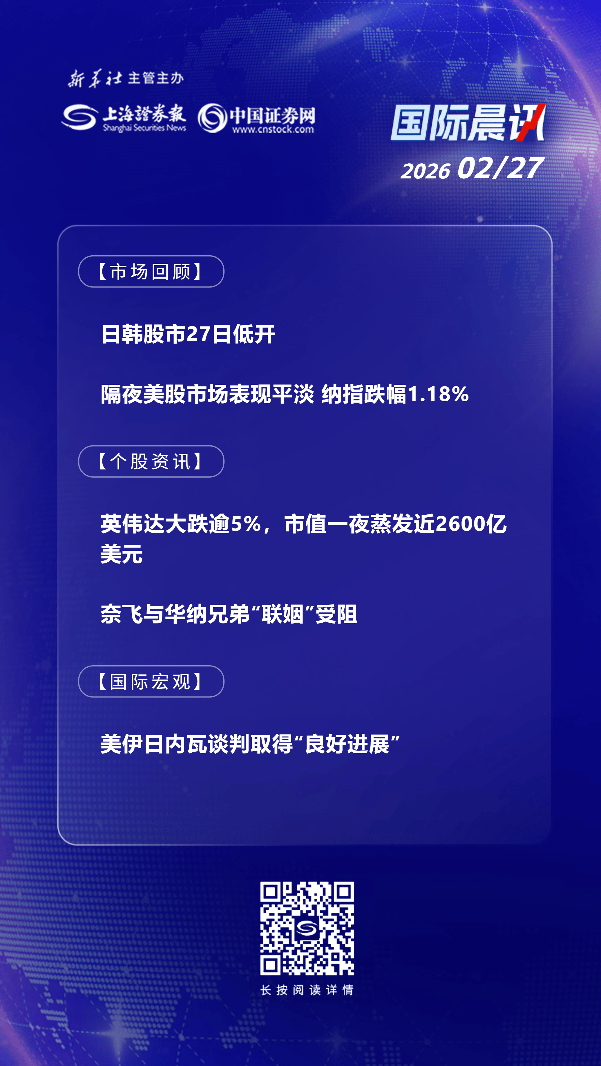 2月26日国际晨讯 | 韩国股市开盘跌破6200点,英伟达市值蒸发近2600亿美元,美伊日内瓦谈判取得“良好进展”