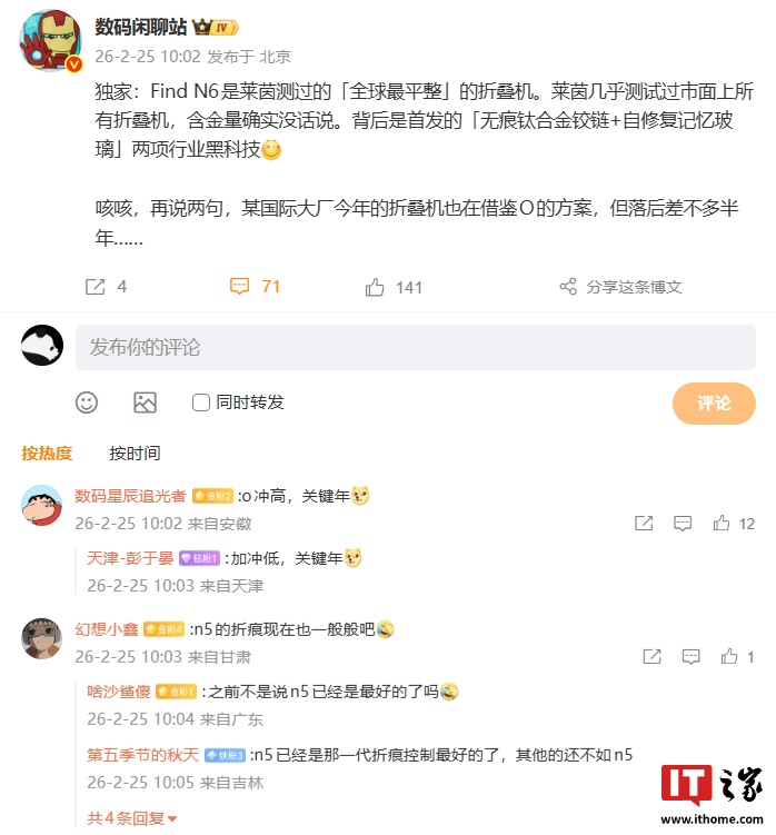 消息称 OPPO Find N6 是莱茵测过「全球最平整」折叠机,将首发无痕钛合金铰链 + 自修复记忆玻璃