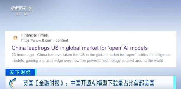 英国《金融时报》:中国开源AI模型下载量占比首超美国