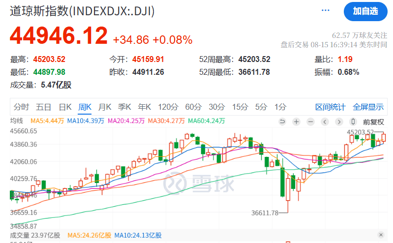 Core Viewpoint - The investment actions of Warren Buffett have significantly influenced the stock market, particularly driving the Dow Jones Industrial Average higher, while other indices like the S&P 500 and Nasdaq experienced declines [2][3]. Group 1: Market Performance - On August 15, the Dow Jones increased by 0.08%, while the S&P 500 and Nasdaq fell by 0.29% and 0.4% respectively. For the week, the Dow rose by 1.74%, the S&P 500 by 0.94%, and the Nasdaq by 0.81%, with both the Dow and S&P 500 reaching intraday historical highs [4]. - The stock of UnitedHealth surged by 12.03% to $304.16 per share, following news of Buffett's investment, marking its largest intraday gain since 2008 [6]. Group 2: Buffett's Investment Actions - According to the latest 13F report, Berkshire Hathaway, led by Buffett, established a new position in UnitedHealth, acquiring over 5 million shares valued at approximately $1.57 billion as of June 30. This marks Berkshire's re-entry into the healthcare insurance sector after a 14-year absence [8]. - In addition to acquiring UnitedHealth, Berkshire reduced its holdings in Apple by 20 million shares and in Bank of America by 26.31 million shares, while increasing its stake in Chevron by over 3.45 million shares and completely exiting T-Mobile US [8]. Group 3: Sector Performance - Major technology stocks showed mixed results, with Intel rising about 3%, while Tesla fell over 1%. The Nasdaq Golden Dragon China Index increased by 0.74%, with notable gains from stocks like Xunlei, which rose over 26% [9]. - Precious metals and oil prices collectively declined, with gold falling to $3,335.28 per ounce, down 1.86% for the week, and Brent crude oil settling at $66.14 per barrel, down 0.68% [11][13].