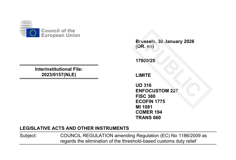 举例来说,一个同时装有真丝上衣和羊毛上衣的包裹,因分属两类商品,需合计缴纳6欧元关税。 需特别注意的是,此次过渡期3欧元固定关税无任何豁免情形,即便属于以下特殊征管场景的商品,仍需按规缴纳: 1. 适用《Directive 2006/112/EC》第143条(1)(ca)项免征增值税条款的商品; 2. 在欧盟IOSS(进口一站式增值税申报)机制下,由跨境电商平台代收代缴增值税的远程进口销售商品; 近日,欧盟最新跨境电商进口监管改革方案正式生效,核心变革在于废除长期实施的"价值低于150欧元小包裹关税豁免"政策,同步明确了过渡性征税措 施与长期监管目标。 欧盟作为全球最大的跨境电商消费市场之一,此次新政将对全球布局欧盟市场的跨境电商平台、卖家产生深远且直接的影响,其中低客单价、薄利润、依 赖直邮模式的经营主体受到的冲击最为显著。 01 150欧元免税时代落幕,缓冲两年 为降低政策突变带来的行业震荡,欧盟设置了为期两年的过渡期,具体时间为2026年7月1日至2028年6月30日。过渡期内,对价值≤150欧元、直接寄送给 欧盟消费者的小包裹,将按商品类别(海关税则小项)统一征收3欧元固定关税,若单一包裹包含不同类别 ...