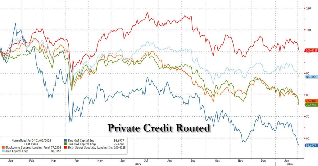Core Viewpoint - The software industry is facing significant risks, leading to a sell-off of U.S. publicly traded private equity (PE) and business development companies (BDC) due to concerns over the valuation of billions in private software debt [1][5]. Group 1: Market Reaction - On February 3, following reports from Goldman Sachs and Barclays, there was a notable sell-off in the market, with Blue Owl Capital's stock dropping approximately 5% and other industry leaders like Ares Capital and Sixth Street Specialty Lending declining over 3% [2]. - A report from Goldman Sachs indicated that hedge funds are rapidly rotating out of software stocks, marking the highest net sell-off in the tech sector since September 2024, with software stocks leading the decline [4]. Group 2: Impact on Private Credit Institutions - The sell-off has severely impacted private credit institutions that finance software companies, with a software stock index plummeting 15% in January, the largest monthly drop since October 2008 [5]. - Barclays analysts highlighted that software constitutes about 20% of BDC portfolios, making them particularly sensitive to declines in software equity and credit valuations, with total exposure estimated at $100 billion [7]. Group 3: Concerns Over Default Rates - UBS strategists warned that if AI leads to the large-scale elimination of traditional software companies, default rates in U.S. private credit could soar to as high as 13% [9]. - Apollo Global Management has already begun reducing its software exposure from 20% to below 10%, indicating a cautious approach towards the software sector [9]. Group 4: Market Sentiment and Analyst Opinions - Despite the prevailing panic, some analysts believe the market may be overreacting, as there is no new fundamental information to justify the declines [12]. - Recent negative news, including significant withdrawals from funds like Blue Owl and TCP Capital Corp., has heightened investor anxiety ahead of the earnings season, leading to a preemptive market downturn [12].