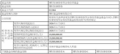 | 基金名称 | | | 加强保障外型证券投资基金 | | | | --- | --- | --- | --- | --- | --- | | 蛋蛋图修 | | | 唱拍在新疆 | | | | 英会主代码 | | | 011864 | | | | 基金管理人名称 | | | 日公開出版的第一篇 | | | | 公室依据 | | | 国家德学校出席到国家教学的政治理法律师 | 根据有关注律法院及《图书记李信参贤党正宗校资基金基金会同》、《博 | | | | | 蟹停大和中国起始日 | 2026年1月13日 | | | | | | 智伊大震持换的人起始日 | 2026年1月13日 | | | | 粒停相关 | | 智能大家出版社制计划的合日 | 2026年1月13日 | | | | 19 2 | 12 | 区制中群投资金额(单位:元) | 10,000,000,00 | | | | DI FR IN | | 限制的换转人投资金额(取位元) | 10.000.000.00 | | | | | | 限制过程过程及设备(单位元) | 10.000.000.00 | | | | 留技能的新时间。 | | 督祭大新申助,乾 ...