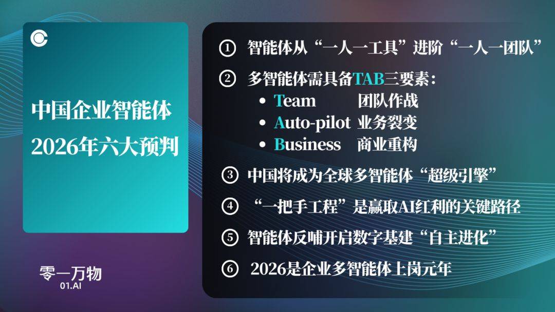 2026“企业 Agent 上岗元年”?零一万物六大判断定义企业多智能体,不再沿用大厂标准化产品模式”