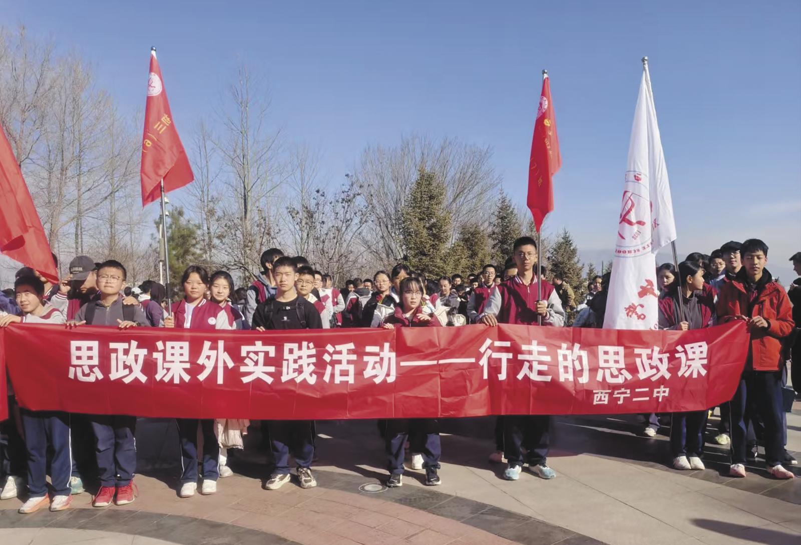 西宁市第二中学行走的思政课活动现场。受访单位供图 本报记者 钟自珍 围绕"大思政课",学校持续推进"行走的思政课"系列实践,主题涵盖生态保护、民族团结、社会治理等,既立足青海实际,也回应时代命题。 在西宁市中小学生模拟政协提案活动中,高中生李翔业和同伴围绕"反诈"主题,走访公安部门和社区,发放200余份问卷,与工作人员反复讨论改进方案, 最终形成的提案获得市级一等奖。李翔业说:"这是自己发现问题、解决问题的过程,不只学到了知识,更感受到自己可以为社会做点事情。" 在实践中,课堂夯实理论基础,校内主题活动强化情感体验,走出校园的实践则实现价值内化,让学生在多元场景中完成思想成长。这种设计,使思政课不 再是"上完即止"的课程,而是贯穿学习、生活和社会参与全过程的持续引领。 近年来,全校学生分批走进西宁市中国工农红军西路军纪念馆,思政课就在展厅中生动展开。讲解声在展柜间回响,英烈事迹一一呈现,不少学生眼眶湿 润。道德与法治教师贺连菊感慨:"那种触动,是课堂语言难以替代的。"参观结束后,学生自发成立"精神宣讲队",在校园里讲述红色故事,把情感认同转 化为持续实践。学生张劭阳说:"参观让我对自己有了更高要求,我想以革命 ...