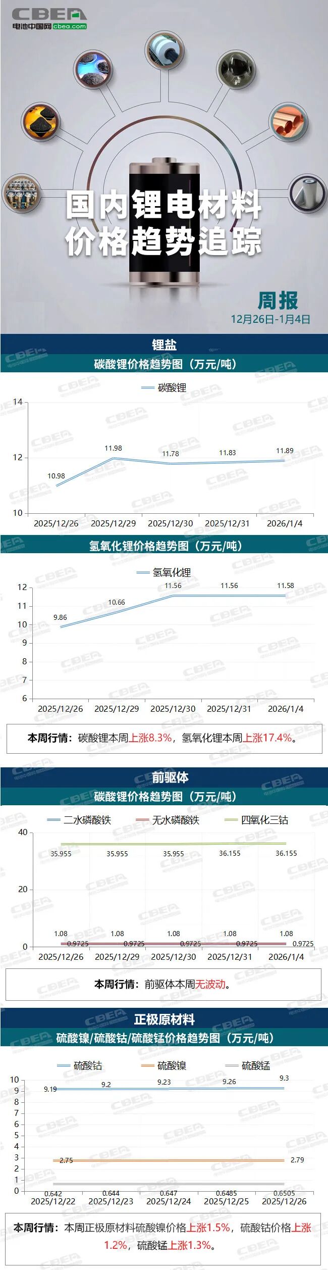 【价格周报】氢氧化锂价格周涨幅达17.4%(12月26日-1月4日)