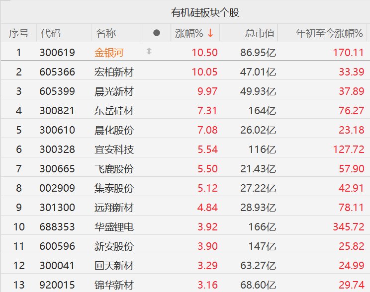 A股有机硅概念股集体上涨,东岳硅材涨超7%