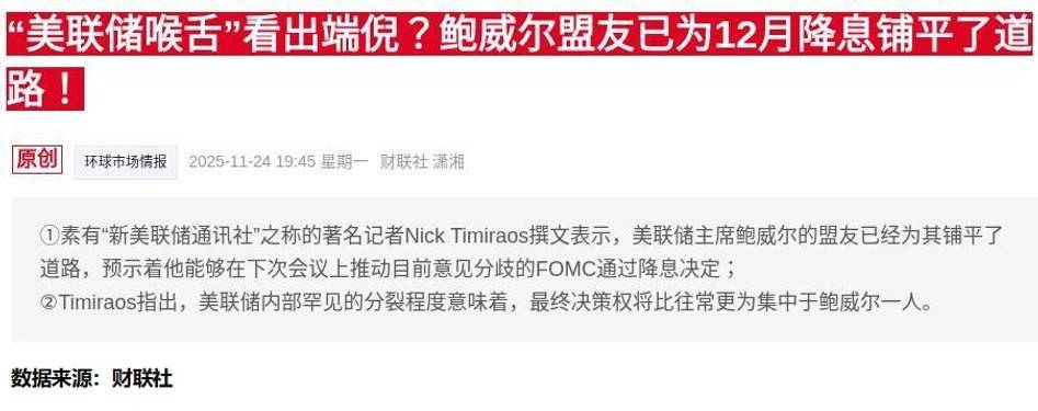 一、美联储的十字路口 素有"新美联储通讯社"之称的记者Nick Timiraos最近爆了个大料:鲍威尔可能在12月推动降息。这个消息一出,市场立刻炸开了锅。要知道,现在美联储内 部的分歧简直比A股散户的意见还要五花八门。 鲍威尔现在手里攥着两个方案: 说实话,这两种选择都够呛。美国经济现在就像个精神分裂症患者:一边是就业市场在降温,一边是通胀还在3%左右晃悠。这种"滞胀"的苗头最让人头疼 ——你既不能太激进地降息刺激通胀,又不能太保守把就业市场搞垮。 引子 最近金融圈最热闹的话题莫过于美联储的利率决策了。作为一个在量化交易领域摸爬滚打多年的老手,我不得不说,这次美联储的内部分歧比我想象中还要 精彩。鲍威尔这位老兄现在就像站在十字路口的司机,前面是通胀的悬崖,后面是就业的泥潭,左右都是反对的声音。这让我想起了自己在股市里摸爬滚打 的经历——有时候数据就在那里明明白白地摆着,但就是有人视而不见。 二、盟友与反对者的博弈 有趣的是,鲍威尔的两位关键盟友已经开始为他铺路了。纽约联储主席威廉姆斯说要把利率调整到"中性水平",这话说得够艺术——既不能太高压死经济, 也不能太低放任通胀。旧金山联储主席戴利更直接,说就业市场 ...
