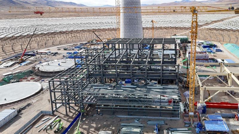 裹着厚重的棉大衣,安全帽下的脸庞呼出团团白雾,杨师傅手中的焊枪却稳稳地在钢板上划过,精准地将两个部 件连接在一起。冬天的安多县帕那镇,寒风凛冽,像一把把无形的小刀,切割着高原稀薄的空气。远处念青唐古 拉山脉的雪峰,在铅灰色天空下显得格外肃穆。海拔超过4600米的西藏开投安多土硕100MW光热+800MW光伏一 体化项目建设工地,却是一片热火朝天的景象。 巨大的打桩机轰鸣着,将一根根基础桩深深嵌入冻土层,高耸的吊臂在凛冽气流中稳定地挥舞,将一块块预制构 件精准安装到位。建设者们身着厚重的防寒服,脸庞被高原紫外线晒得黝黑透红,呼出的气息瞬间凝成白雾,又 迅速消散。他们或是在仔细核对图纸,测量精度;或是在焊接钢构,飞溅的焊花在昏沉天光下格外耀眼,如同在 这片苍茫大地上点燃了一簇簇不灭的火星。 极地蓝海:一座光热之塔的"能量密码" 该项目距离西藏那曲市安多县帕那镇东部约17.5公里,总投资达48.7亿元,其中光热部分投资为20.1亿元。光热项 目镜场总采光面积约80万平方米,储热时长达到8小时,采用光热与光伏结合的先进模式,光热发电工程装机规模 为100MW,采用先进的熔盐塔式技术,设计年等效利用小时数达到2551小 ...