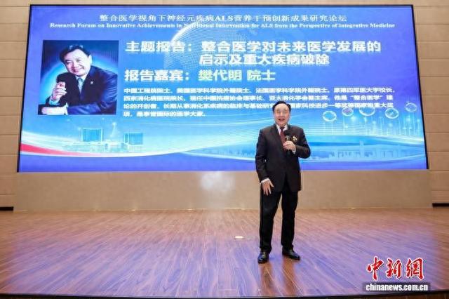 中新网深圳1月11日电(何俊杰)中国工程院院士樊代明及深圳、香港两地多位医学专家11日齐聚深圳, 在"整合医学视角下神经元疾病与ALS营养干预创新成果研究论坛"上,共同探讨肌萎缩侧索硬化(ALS, 俗称"渐冻症")这一世界性医学难题的破解路径。 活动现 活动现 场。主办方供图 在论坛的圆桌会议环节,深港两地的临床专家围绕"整合医学视角下的渐冻症综合治疗"展开了深度对 话。专家们一致认为,面对ALS这一挑战,单一学科的作战模式已难以满足临床需求,未来必须依托整 合医学平台,打通神经内科、重症医学、中医科及营养科的壁垒,构建全生命周期的多维诊疗体系。 此次论坛的成功举办,不仅为粤港澳大湾区医学同仁搭建了高水平的交流平台,也为推动区域内神经元 疾病诊疗水平的提升注入了新的动力。(完) 场。主办方供图 如今,"渐冻症"受到医学界与社会公众的高度关注。在这种罕见病无法被现代医学所攻克的前提下,整 合医学成为罕见病诊疗与管理的重要方向与核心策略。论坛现场,中国工程院院士樊代明以《整合医学 对未来医学发展的启示及重大疾病破除》为题发表了主旨演讲,阐述了整合医学在应对复杂疑难疾病中 的关键作用。 营养修复神经元与渐冻症研究学 ...
