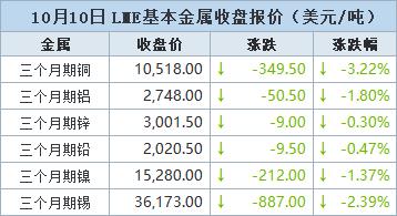 金属全线下跌 期铜下跌,受累于贸易紧张局势升级的担忧【10月10日LME收盘】