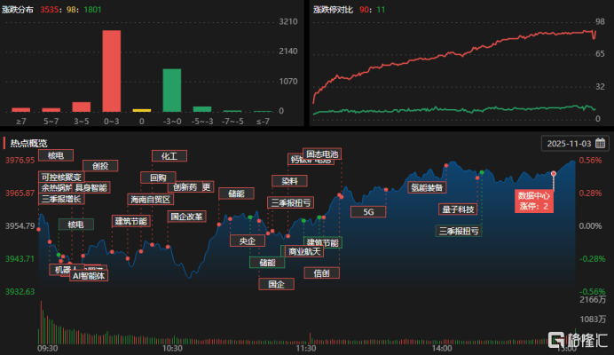 2025 年11 月3 日市场全天探底回升,钍基熔盐概念股全天走强