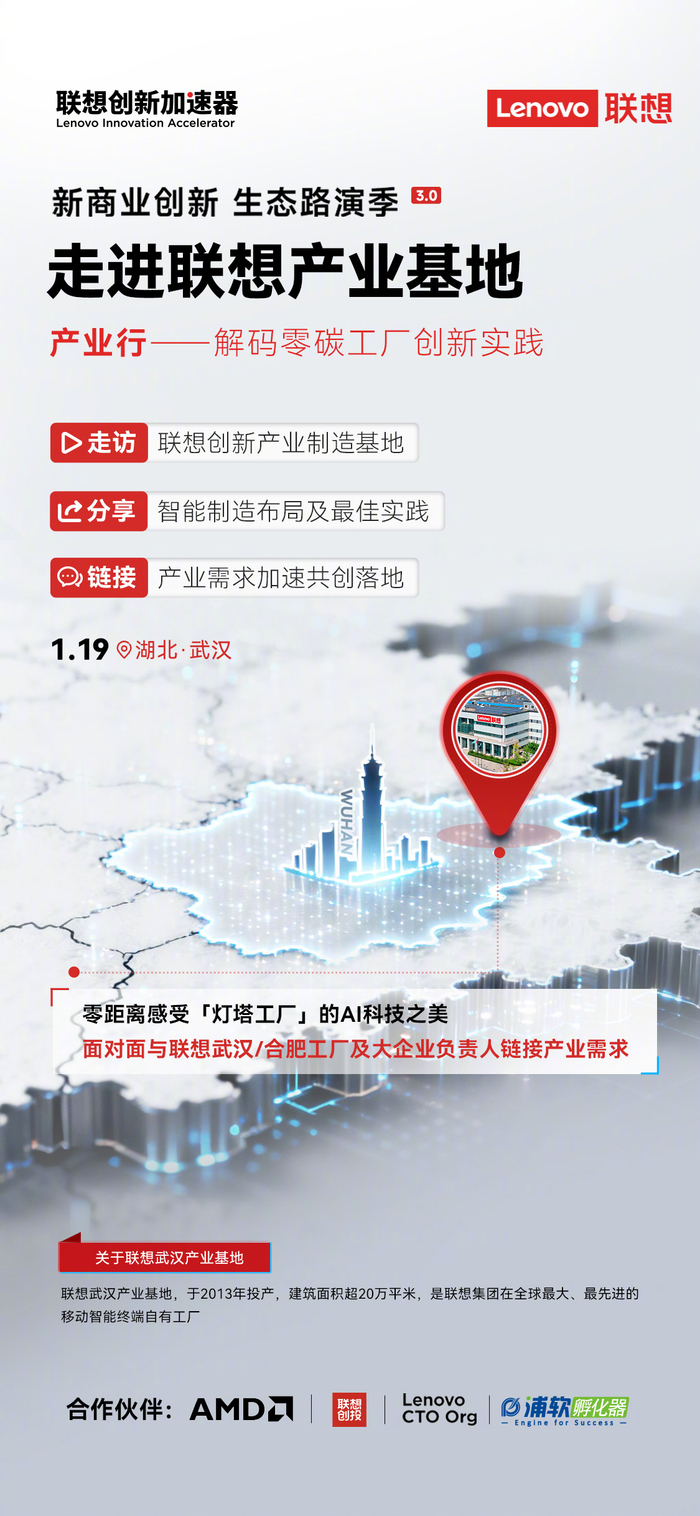 探秘智造新高地,联想武汉产业基地开放走访啦! 零距离感受「灯塔工厂」的AI科技之美 面对面与联想武汉/合肥工厂及大企业负责人链接产业需求 关于联想武汉产业基地 联想武汉产业基地,于2013年投产,建筑面积超20万平米,是联想集团在全球最大、最先进的 移动智能终端自有工厂 合作伙伴: AMD司 | 闘 | cfooo (2) 127 这里是全球领先的移动终端"零碳工厂",每0.6秒下线一台设备,日产能超14万部。你将亲眼见证业界 首条5G+IoT自动化产线"量子线",感受4小时重构生产流程的柔性制造,体验AI视觉检测与智能机器人 协同作业的科技震撼。 更有机会对接产业需求,与联想武汉/合肥基地专家共探智能制造解决方案,链接联想全球160国市场资 源。如果你想近距离触摸未来工厂的脉搏,推动企业产品与技术加速落地,快来评论区报名吧 ...