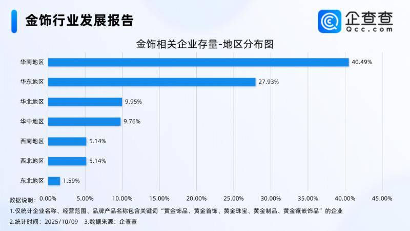 黄金价格暴涨!企查查:我国金饰企业近50%集中在华南