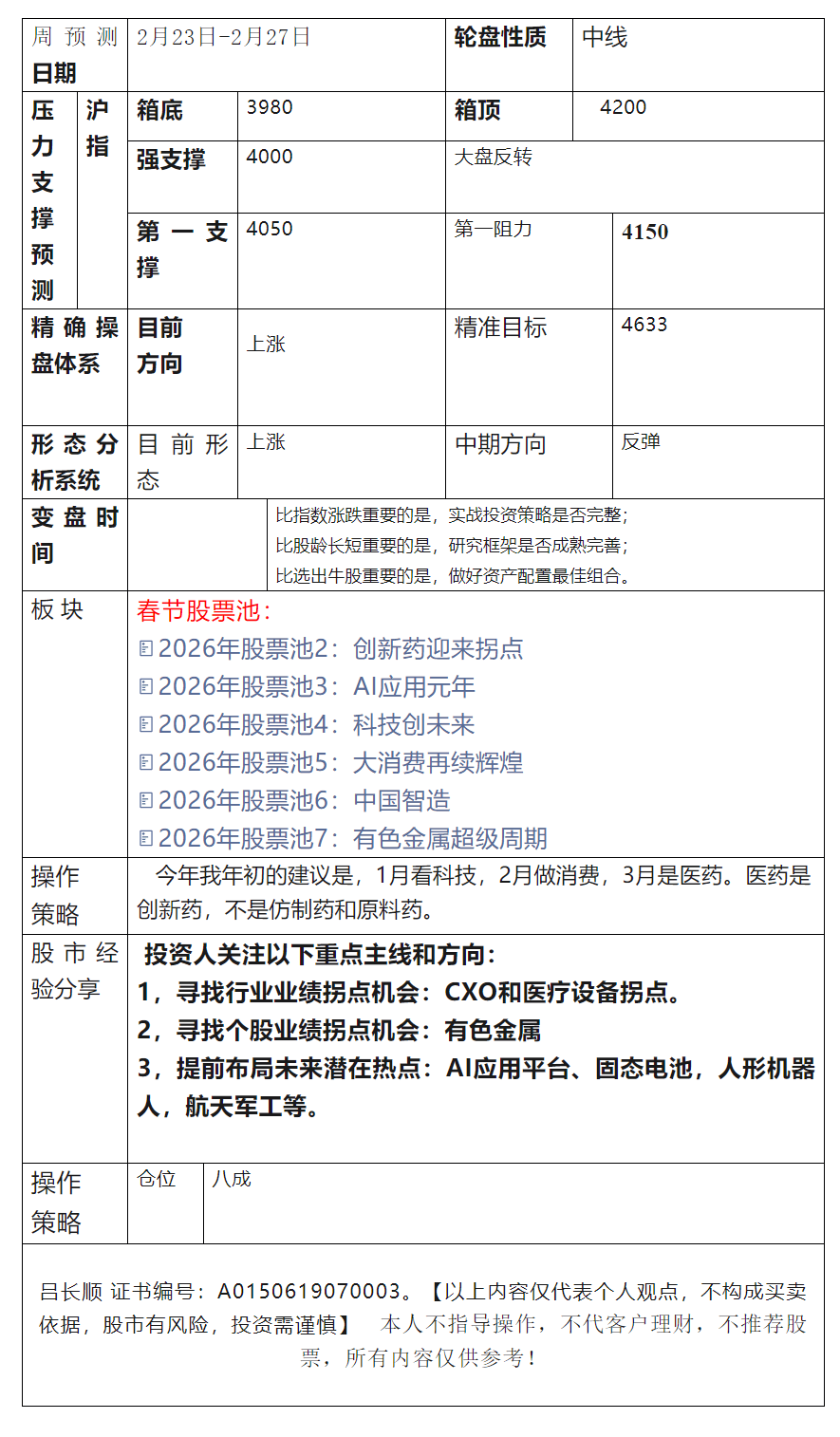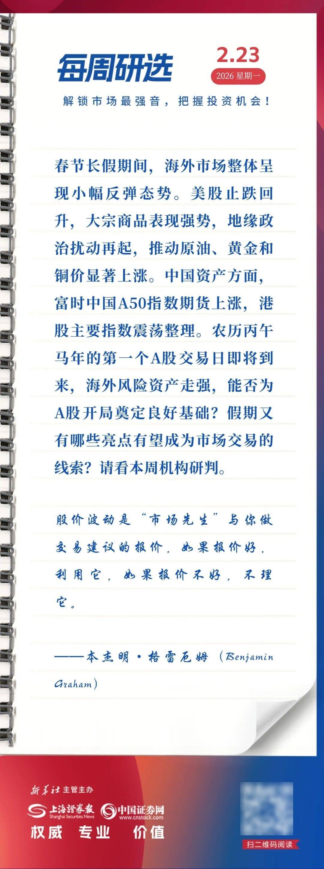 Group 1 - The article highlights four major signals that are expected to support the market as it opens for the Year of the Horse, including continuous policy support, strong consumer recovery, clear industry trends, and favorable external market conditions [4][6][9] - Policy measures are focused on equipment upgrades, consumer goods exchange programs, and significant support for new infrastructure, digital economy, and renewable energy sectors, which are expected to boost economic recovery [4] - Consumer spending has shown remarkable resilience, with record box office revenues during the Spring Festival, a doubling in travel bookings, and a nearly 500% increase in duty-free shopping in Hainan, alongside over 20% growth in dining and accommodation transactions [4] Group 2 - The article notes that the global market has been performing well, with significant gains in indices such as the Hang Seng Index and the Nikkei 225, which rose over 4%, creating a positive environment for the A-share market [6][7] - Commodity markets have also seen increases, with LME copper up 4%, London silver up 3%, and Brent crude oil rising 2.3%, providing support for cyclical sectors [7] Group 3 - The investment strategy for the Year of the Horse emphasizes a cautious approach, focusing on structural opportunities rather than broad market gains, with a prediction of a stable opening and active sector performance [9][10] - Four main investment themes are identified: the AI industry chain, semiconductors and advanced manufacturing, consumer recovery sectors, and cyclical resources, with AI being the strongest focus due to its recent performance [10][11][12] - The article advises against high-risk strategies, recommending a focus on core stocks within the identified themes and careful monitoring of key indicators such as trading volume and foreign capital inflows [13][14]