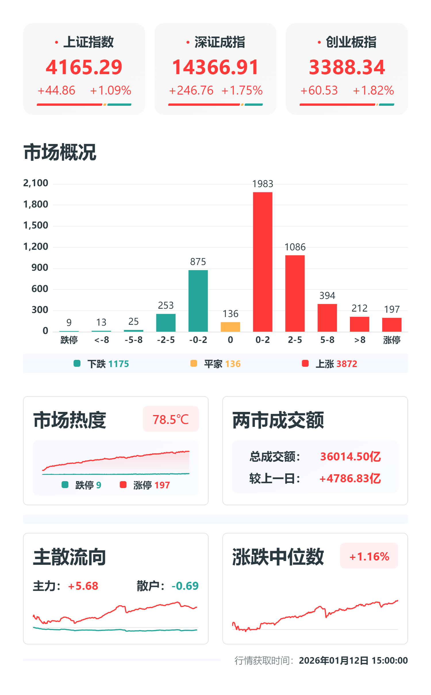 近期,人工智能产业催化信息不断。工信部部长李乐成在接受新华社采访时表示,将深入实施"人工智能+制造"专项行动,统筹布局通用大模型和行业大模 型,培育一批重点行业智能体、智能原生企业。此外,由清华大学基础模型北京市重点实验室、智谱AI发起的AGI—Next前沿峰会近日召开,会议探讨了大 模型向智能体(Agent)阶段演进的发展趋势。 产业层面,全球消费电子盛会CES 2026于1月9日收官,英伟达、AMD等公司展示了在AI算力芯片领域的最新进展。国内方面,智谱、MINIMAX等大模型 算法公司近期陆续登陆资本市场,商业化进程受到关注。 市场有风险,投资需谨慎。本文为AI基于第三方数据生成,仅供参考,不构成个人投资建议。 来源:市场资讯 1月12日,人工智能概念在A股市场呈现普涨格局,相关应用方向受到广泛关注。当日,沪深两市成交额突破3.6万亿元,创下历史新高,市场整体活跃度显 著提升。 从细分领域看,AI营销、多模态AI、AIGC等概念指数涨幅居前。易点天下、蓝色光标、中文在线、昆仑万维等近40只相关个股收获涨停。在港股市场,AI 应用板块同样表现强劲。 ...