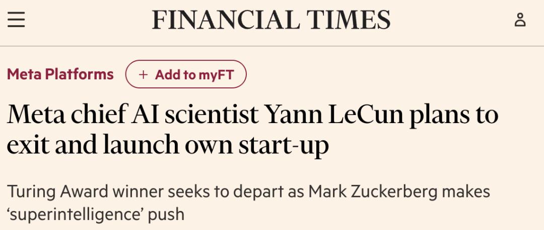 忍无可忍,LeCun离职Meta。 金融时报消息,LeCun向同事透露了自己的离职计划,下一步打算创业。 数个月的重重挤兑之下,一忍再忍的LeCun,还是爆发了…… 消息一出,Meta的市值直接在盘前交易中蒸发了1.5%,也就是200多亿美金,大致相当于1400多亿人民币,并且开盘后仍在持续下跌。 与此同时,小扎也正在调整Meta的AI战略,以追赶谷歌和OpenAI,LeCun领导了十多年、代表着长期主义的FAIR实验室,将被战略性放弃。 这种放弃也早有征兆——上个月,在首席AI官亚历山大王的主导之下,Lecun治下的FAIR连同总监在内600多人被一刀裁掉。 这也成了压在LeCun身上的最后一根稻草,压抑已久的不满在此刻变成了离职的决心。 更何况更早之前,Meta在竖子亚历山大王的搅和下,也已经容不下太学术太理论的研究了。 受尽挤兑,LeCun忍无可忍 LeCun的离开并非毫无征兆。 实际上,他对Meta的不满一直都在积累,自从Meta开始大刀阔斧调整AI战略之后,LeCun可以说是受尽了挤兑—— 首先是Meta的AI战略频繁摇摆,架构调整不断,短短6个月内就对内部AI部门进行了4次重组,导致研究无法推进。 ...