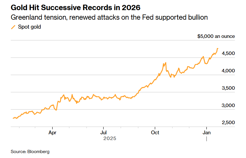 黄金牛市信仰再加码! 格陵兰危机+日债崩盘+美联储独立性危局 金价蓄势奔向5000美元