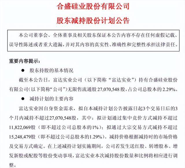 合盛硅业遭股东清仓式减持,减持股份市值近16亿元