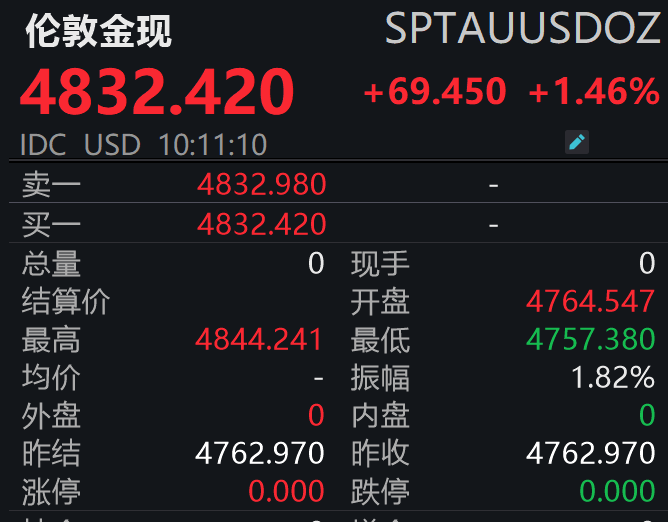 国际金价,再创新高!现货黄金突破每盎司4800美元,金饰价格逼近1500元