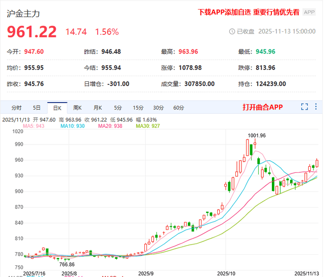 日内收盘,沪金上涨1.56%,报收961.22元/克。 乌克兰外交部第一副部长基斯利察正式宣布,因今年数轮与俄罗斯的和平谈判均未取得实质性进展,乌 方已停止所有相关对话,且2025年底前不再启动新谈判,这一表态使俄乌和平进程彻底陷入停滞。 期货公司观点 俄罗斯外交部发言人扎哈罗娃随即回应,将停谈责任归咎于乌方,指责其破坏战俘交换协议。这一僵局 迅速引发全球金融市场震荡,避险情绪与能源、农产品供给担忧主导短期走势。 目前看,短期波动源于地缘风险升温,但长期走势仍取决于能源供给替代进度与央行政策。若战事延 长,全球通胀压力或再度抬头,美联储降息预期可能延后。对投资者而言,能源与贵金属的避险配置价 值上升,而欧洲制造业企业盈利将持续承压,市场避险与博弈情绪料将维持。 广发期货: 美国经济运行和就业市场持续受到政府"关门"和贸易摩擦的冲击,然而随着美联储内部分歧较大并释放 鹰派信号使短期政策不确定性增加。地缘政治、金融机构"爆雷"等风险事件频发,更多央行增持黄金, 投资者重塑资产定价体系对金融属性强的商品货币的配置比例仍将上升,中长期有望驱动贵金属有望重 现类似 1970 年代的牛市行情。但从前几轮金价上涨经验看,价 ...