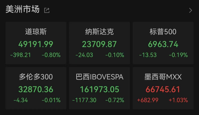 美联储独立性承压之时,全球多国央行"齐撑"鲍威尔。据环球时报援引《华尔街日报》消息,13日,全 球多国央行行长"史无前例"发表联合声明,力挺美联储主席鲍威尔。声明中表示,"我们与美联储及其 主席鲍威尔完全团结在一起",并强调维护美联储的独立性"至关重要"。 当地时间1月13日,美股三大指数自历史高位集体回落。截至收盘,道指跌0.80%,纳指跌0.10%,标普 500指数跌0.19%。 全球局势方面,当地时间1月13日,美国总统特朗普在社交媒体上发文说,他已经取消所有与伊朗官员 的会谈。与此同时,美国国务院再发安全警告,敦促美国公民立即离开伊朗。 美国2025年12月CPI数据当天出炉,传递出更具说服力的通胀降温信号。美国劳工统计局数据显示,美 国12月消费者价格指数(CPI)同比增长2.7%,符合市场预期;核心CPI同比增长2.6%,略低于市场预 期。分析师发表评论称,"这为美联储采取更温和的立场扫清了道路。不过1月降息仍非定局。" 新一轮美股财报季启幕银行股全线走低 美国通胀进一步放缓 当地时间1月13日,美三大股指全线收跌。截至收盘,道指跌0.80%,报49191.99点;纳指跌0.10%,报 23709 ...