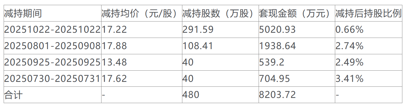 Core Viewpoint - The company announced that a major shareholder, Zhou Xiaoyan, plans to reduce their stake in the company by up to 2.2142 million shares, representing 0.38% of the total share capital, due to personal funding needs [1] Summary by Relevant Sections - **Shareholder Reduction Plan** - Zhou Xiaoyan, a natural person shareholder holding more than 5% of the company's shares, intends to reduce their holdings through centralized bidding and/or block trading [1] - The reduction is planned to occur within three months after the announcement, starting 15 trading days from the disclosure date [1] - The selling price will be determined based on the market price at the time of the reduction, indicating uncertainty in the implementation of this plan [1]