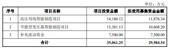 中国经济网北京11月12日讯 威腾电气(688226.SH)昨晚发布2025年度以简易程序向特定对象发行A 股股票预案显示,本次发行募集资金总额不超过人民币29,984.54万元(含本数),扣除相关发行费用后 的募集资金净额拟用于以下项目:高压母线智能制造项目、节能型变压器智能制造项目、补充流动资 金。 | | | | 序号 | 项目名称 | 项目投资总额 | 拟使用募集资金金额 | | --- | --- | --- | --- | | 1 | 高压母线智能制造项目 | 14,180.12 | 11,876.34 | | | 节能型变压器智能制造项目 | 13,381.13 | 10,608.20 | | 3 | 补充流动资金 | 7.500.00 | 7,500.00 | | | 合计 | 35,061.25 | 29,984.54 | 威腾电气公告指出,本次发行的股票种类为境内上市人民币普通股(A股),每股面值为人民币 1.00元。本次发行采用以简易程序向特定对象发行的方式,在中国证监会作出予以注册决定后10个工作 日内完成发行缴款。 本次发行的定价基准日为发行期首日。发行价格为不低于定价基准日前二十个 ...