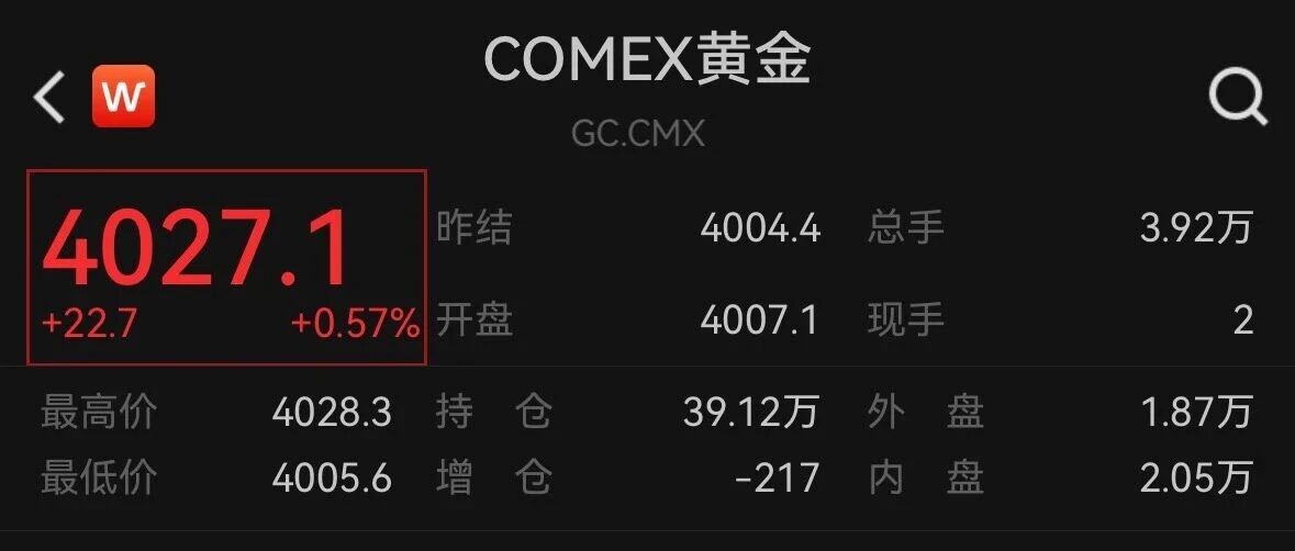 每经编辑|何小桃 向江林 | W | | | 伦敦金现 | | | | | | --- | --- | --- | --- | --- | --- | --- | --- | | | SPTAUUSDOZ.IDC | | | | | | | | 4000008 | | 昨结 | 3984.340 | 总量 | | | 0 | | +15.668 | +0.39% 升篇 | | 3984.460 | 现事 | | | 0 | | 最高价 | 4001.080 | 搏 仓 | 0 | ター | में क | | 0 | | 最低价 | 3982.748 | 搜 色 | O | 内 | 물 | | 0 | | 分时 | 五日 | 日K | 園K | 目K | | 申文 | (0) | | 叠加 | | | | 均价:0.000 | | | | | 4001.080 | | | | ---- 0.42%- | | 4000.332 | | | | | | | | दरि | 4000.008 | -- | | | | | | | 10:00 4000.912 | | 0 | | | | | | | 10:00 40 ...