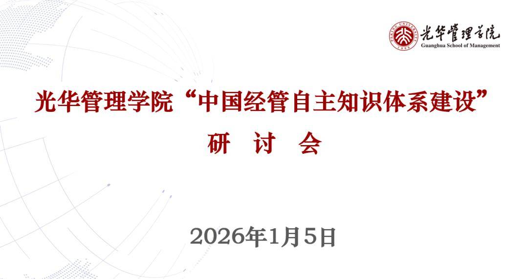 导语 究的重镇,光华管理学院必须胸怀"国之大者",把经管自主知识体系建设转化为学院"学术、学科、学人"发展的具体实践和长远战略,在强国建设、民族 复兴伟业中书写学术报国的光华新篇章。本次研讨会旨在凝聚共识、校准方位、坚定信心,通过务实举措加快推进中国经管自主知识体系建设。 2026年1月5日,北京大学光华管理学院举办"中国经管自主知识体系建设"研讨会,深入学习贯彻党的二十届四中全会精神,围绕加快构建中国哲学社会科 学自主知识体系,深入探讨中国经管自主知识体系的价值定位、范式特征、理论内涵、核心要素、目标任务及发展路径等。 本次研讨会汇聚了来自学院各个系科,以及多个学科交叉平台、特色实验室和前沿交叉创新研究团队的四十多位学者。光华管理学院院长刘俏教授以《现 代化进程与中国经管自主知识体系建设》为题作引导发言。随后二十余位教授依次发言,围绕议题展开深入交流。整场会议由光华管理学院副院长、市场 营销学系沈俏蔚教授主持。 与会学者聚焦卓越学术与自主知识体系建设的"突破性"布局,就以下关键问题展开了深入研讨:中国原创经济理论和管理理论如何取得具体突破?碳中和 经济学、可持续发展、AI for Social Scienc ...