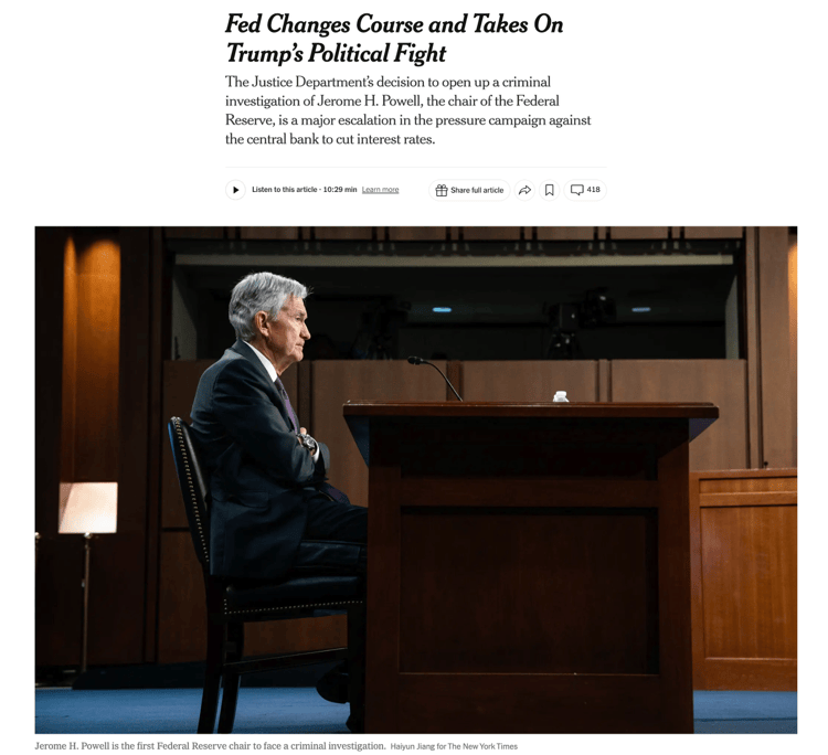 美联储独立性危机引发全球关注,多国央行将联手声援鲍威尔!